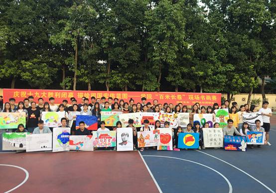 10月24日,我校举办“庆祝十九大胜利闭幕 描绘祖国宏伟蓝图”——百米长卷现场书画赛。全院各团支部共推荐120人参加比赛,学院党委林志华书记、马国玄副书记亲临现场指导。