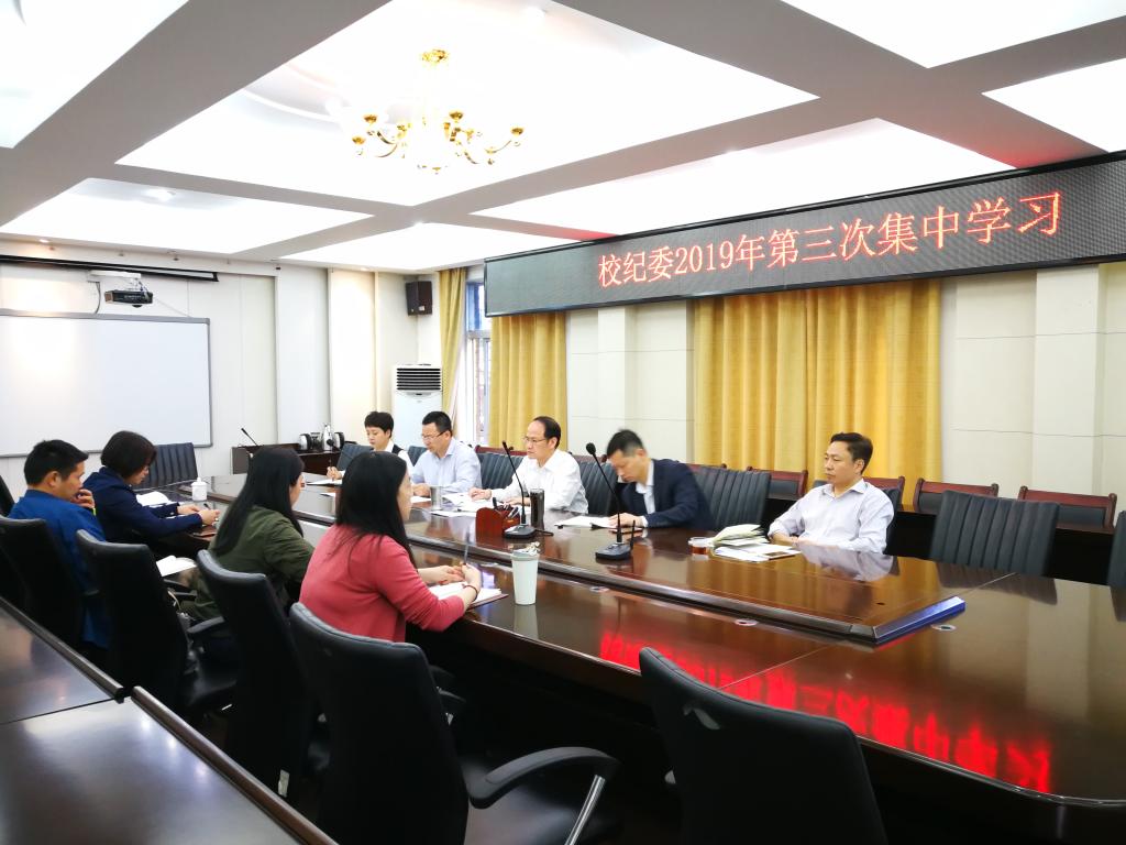 4月28日上午,校纪委组织2019年第三次集中学习会议。会议由校纪委书记马国玄主持,校纪委委员、各党总支纪检委员、监察审计处干部参加了学习。