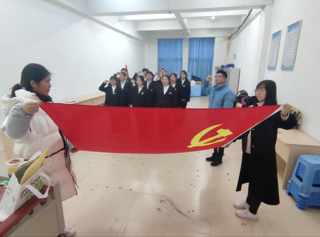 10名预备党员面向党旗庄严宣誓。洪雪惠作为预备党员代表结合自身经历,分享了对党的认识和感悟,表达了对党的热爱和忠诚,并承诺将以此次宣誓为契机,不断加强党性修养,提升自我,扎实工作,为祖国的高质量发展贡献自己的力量。
