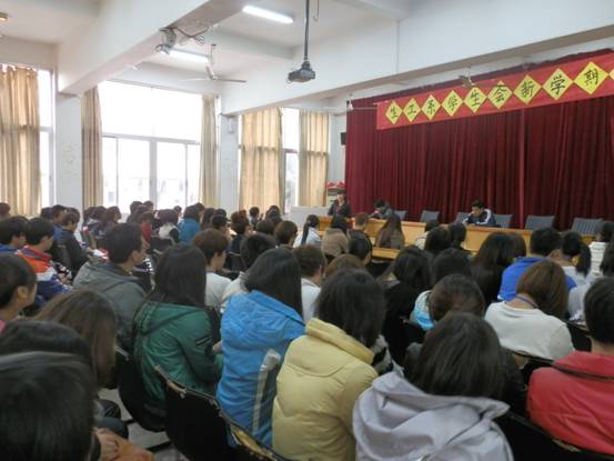 2012年2月21日生物工程系在阶二召开系新学期学生会动员大会,参加本次大会的有黄少挥老师以及全体学生会成员。